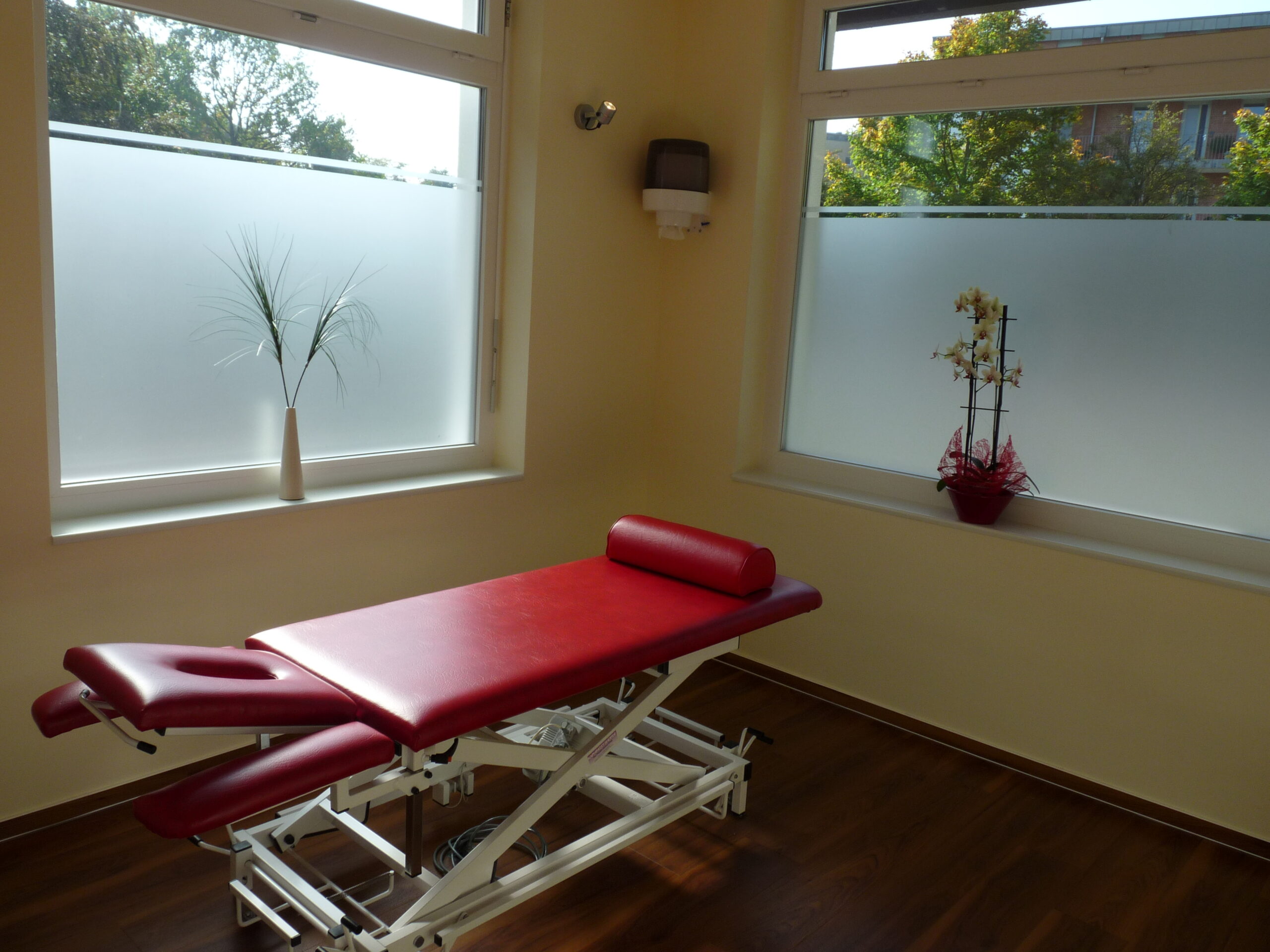 Durch die entspannte und ruhige Atmosphäre in unserer modernen Praxis bieten wir Ihnen effektive Behandlungsmöglichkeiten und unseren qualifizierten Therapeuten erstklassige Entfaltungsmöglichkeiten. Das Sonnenlicht strahlt durch die ausladenden Fensterflächen in unsere hellgelben Räumlichkeiten. Während der Wartezeit und der Behandlung erwartet Sie bei uns angenehme Hintergrundmusik, damit Ihr Aufenthalt in unserer Praxis so komfortabel wie nur möglich ist. Die Parkplätze befinden sich direkt vor dem Eingang unserer Räumlichkeiten. Wir freuen uns auf Ihren Besuch!